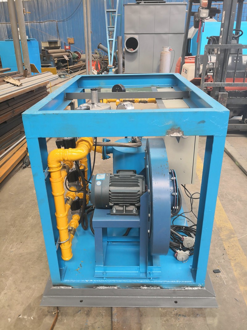 中間包烘烤器:包括燃燒器、鼓風(fēng)機(jī)、助燃風(fēng)管道系統(tǒng)和煤氣管道系統(tǒng),所述助燃風(fēng)管道系統(tǒng)一端連接鼓風(fēng)機(jī),另一端接入位于燃燒器前的煤氣管道系統(tǒng),還包括通過(guò)控制煤氣管道閥門開閉自動(dòng)調(diào)節(jié)溫度的控制系統(tǒng),所述燃燒器為1-5個(gè)(根據(jù)膜胎尺寸確定),中間包工作層受熱均勻,易脫模節(jié)能效果明顯。